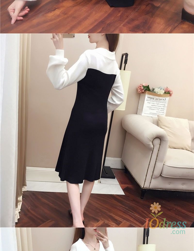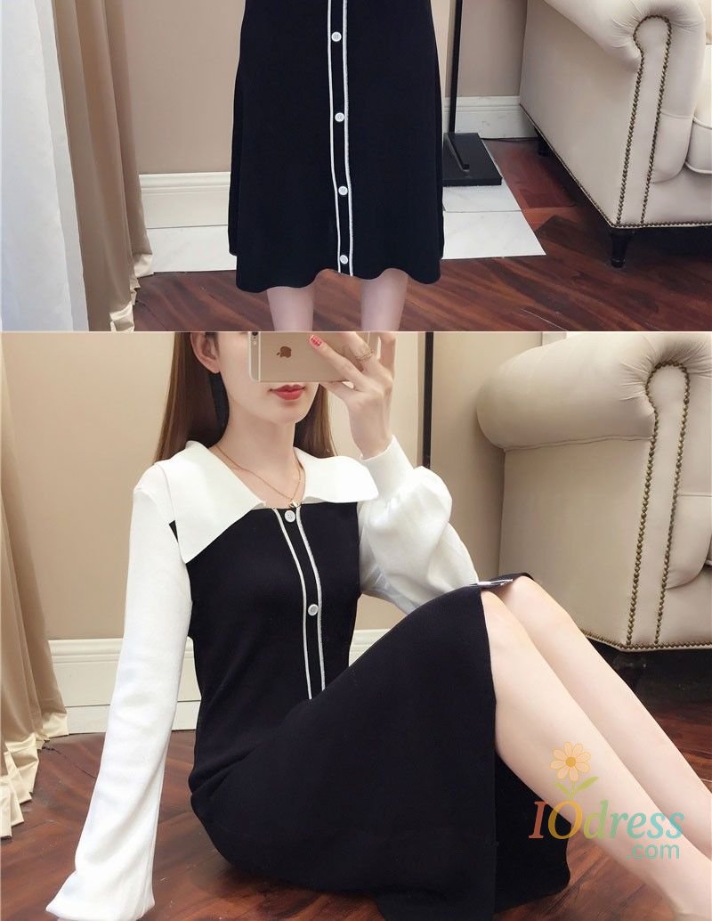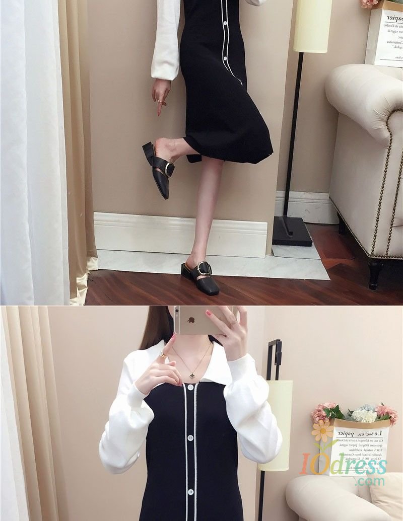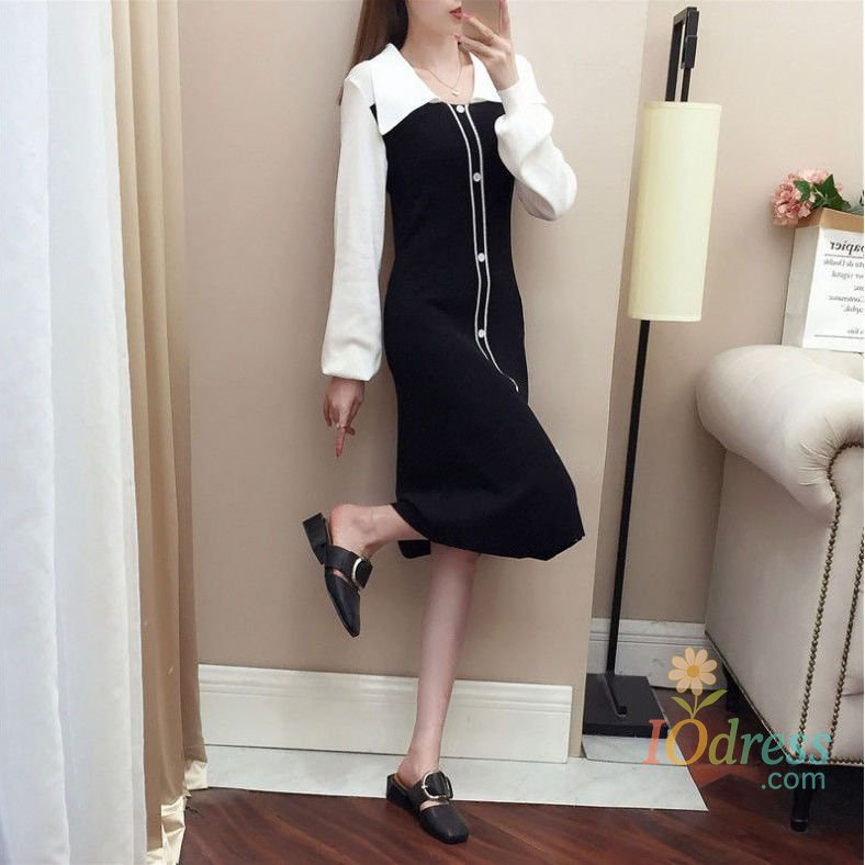 IO Dress Fake Two-piece Dress Autumn Winter New Waist Knitted Mid-length Temperament Polo Neck Sweater Skirt