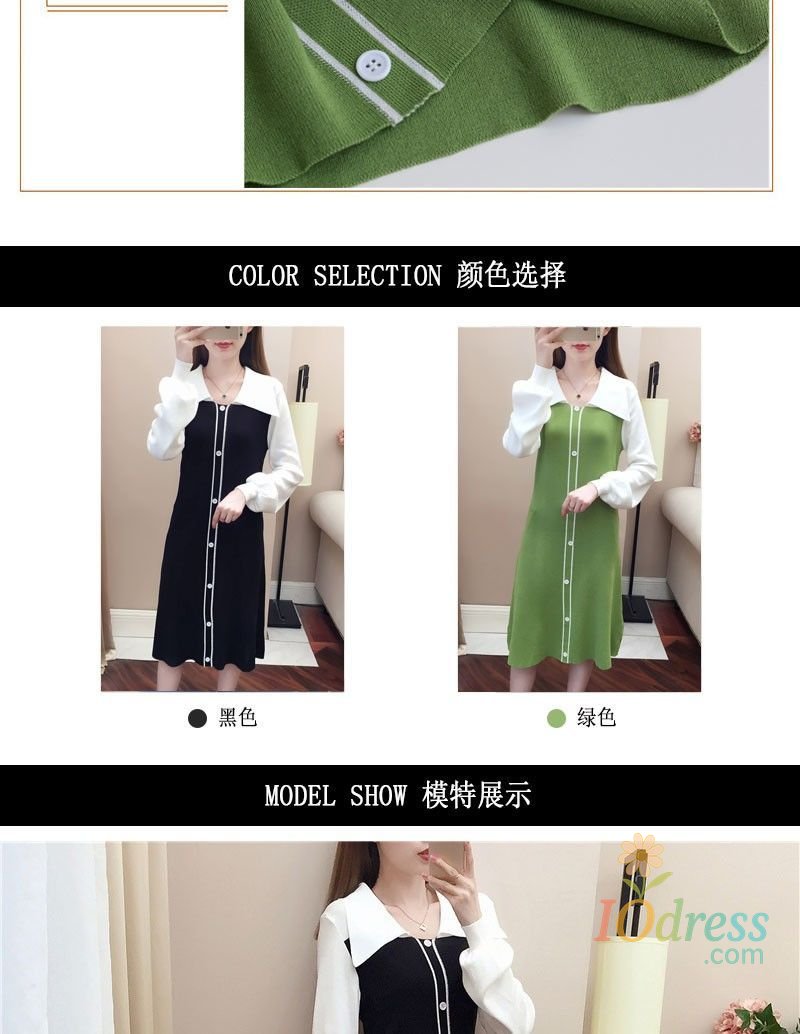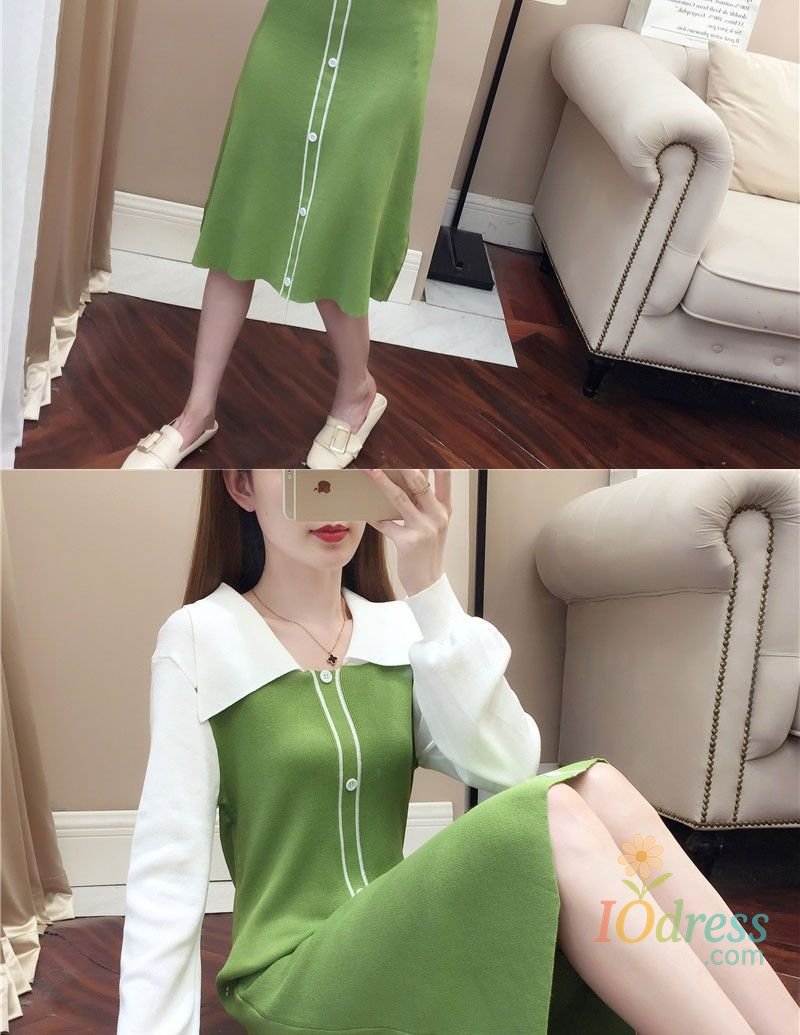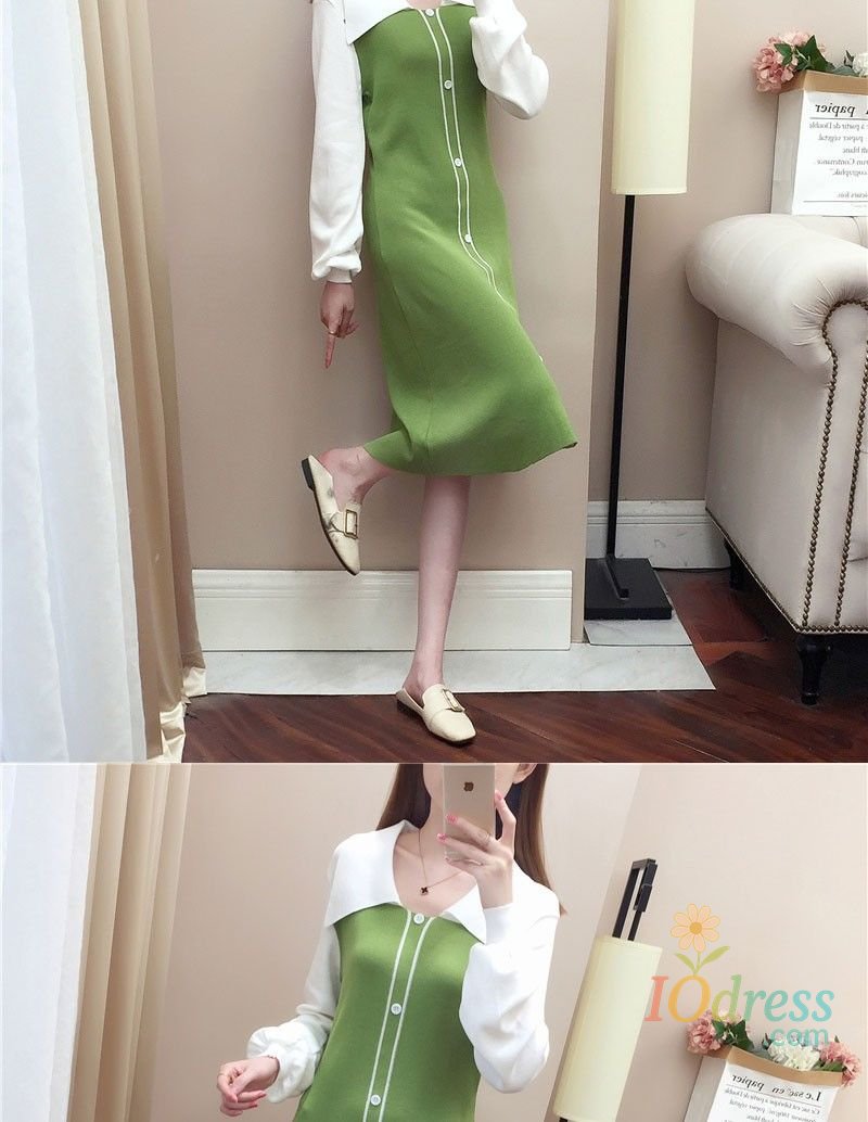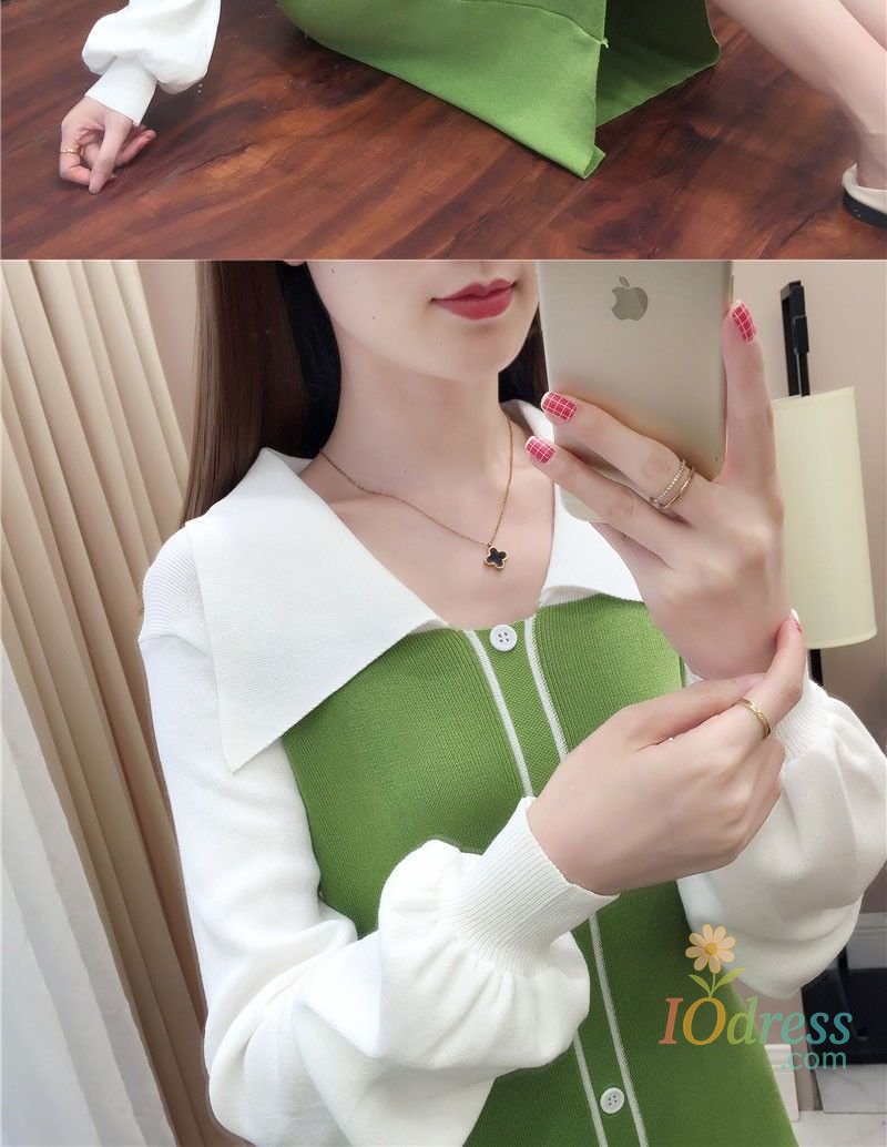 IO Dress Fake Two-piece Dress Autumn Winter New Waist Knitted Mid-length Temperament Polo Neck Sweater Skirt