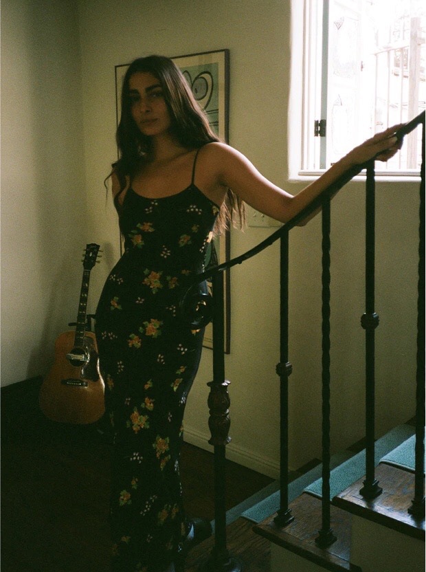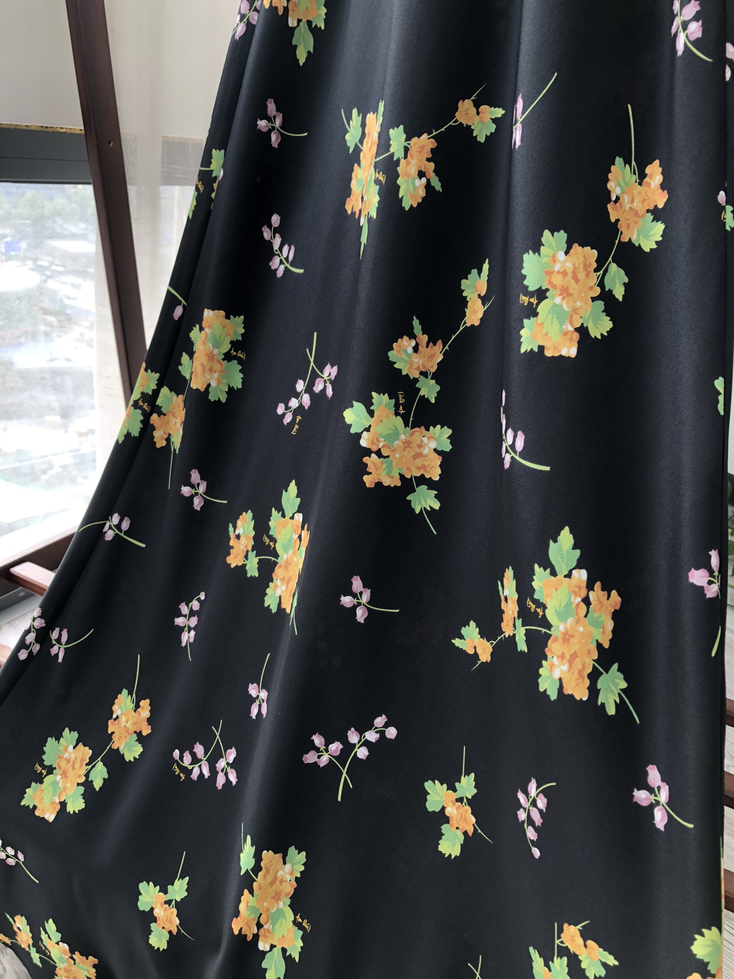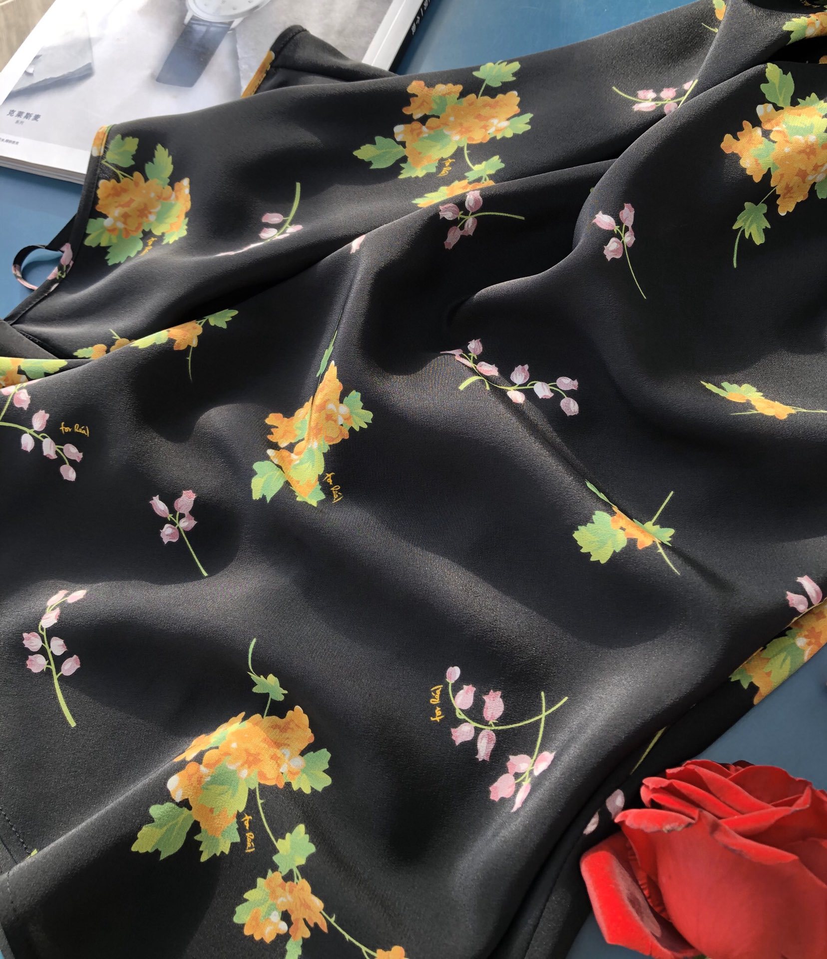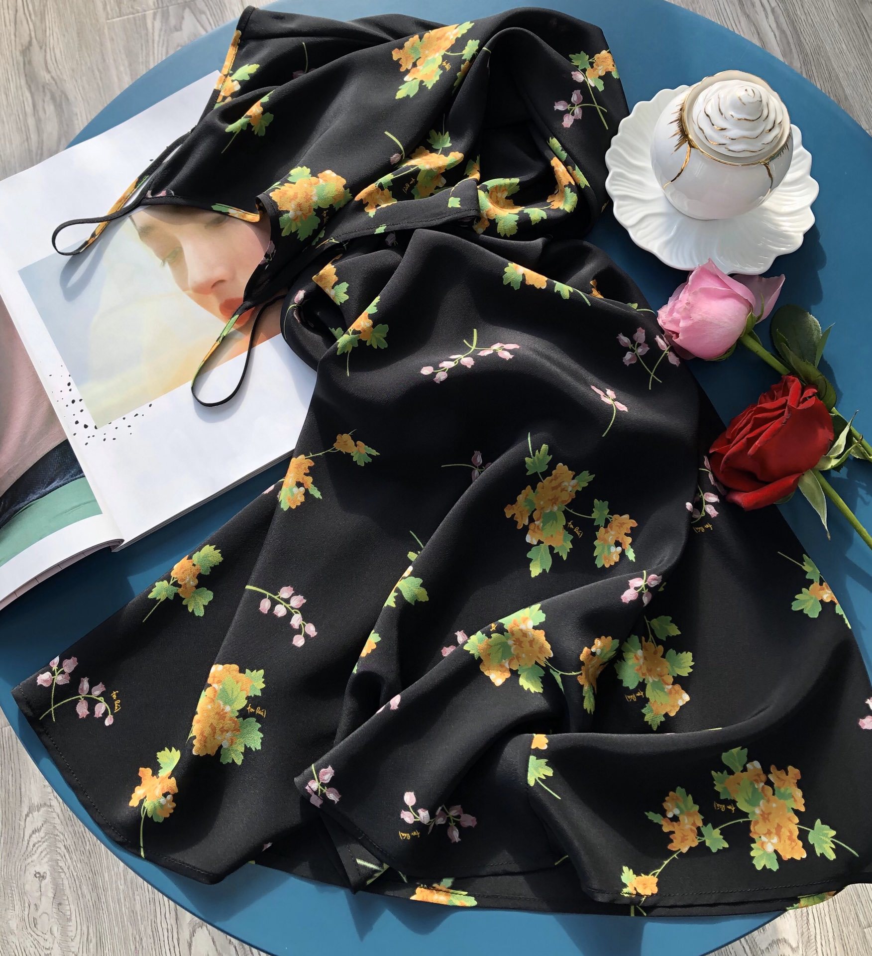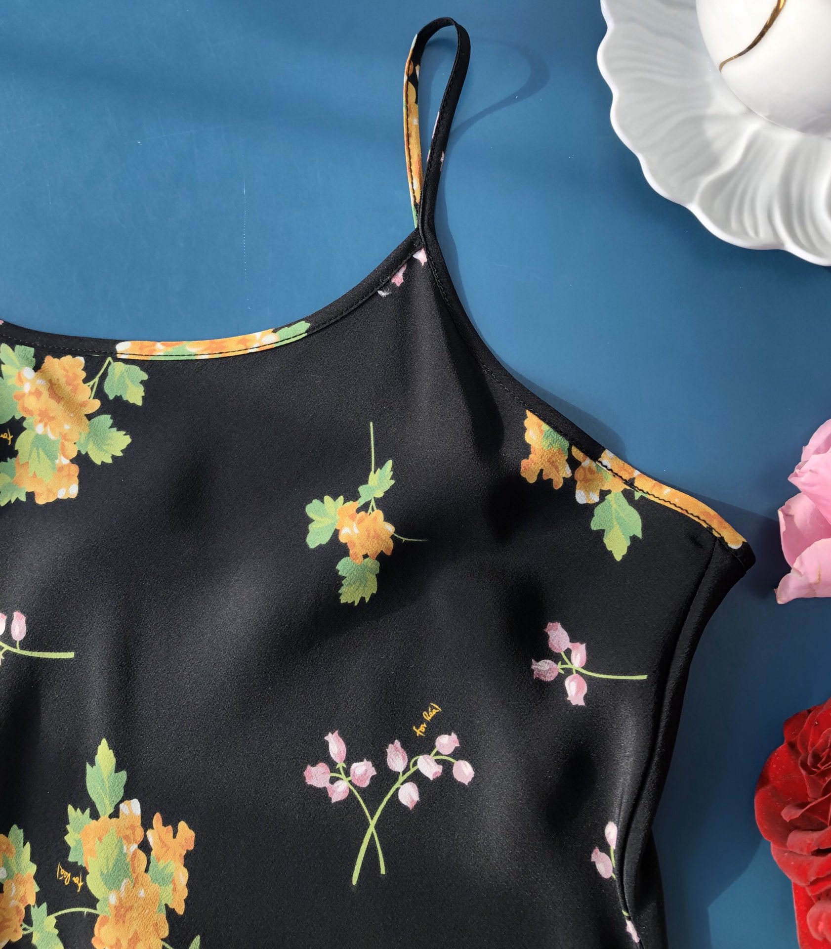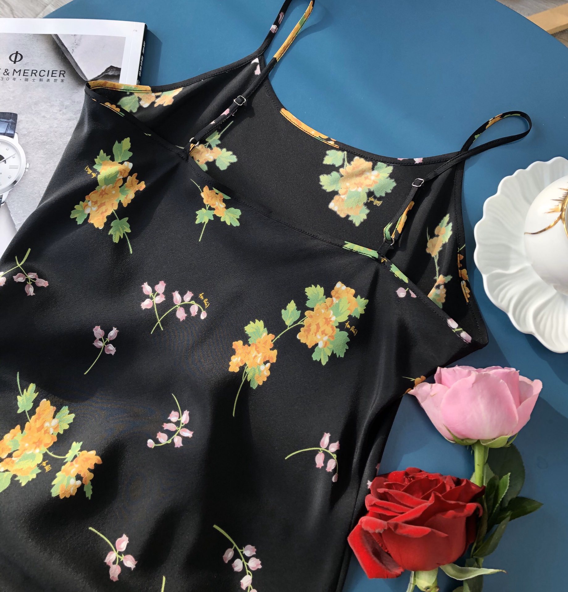 Minimalist route pays more attention to the sense of curves, silk wind chime flower printed suspender long dress