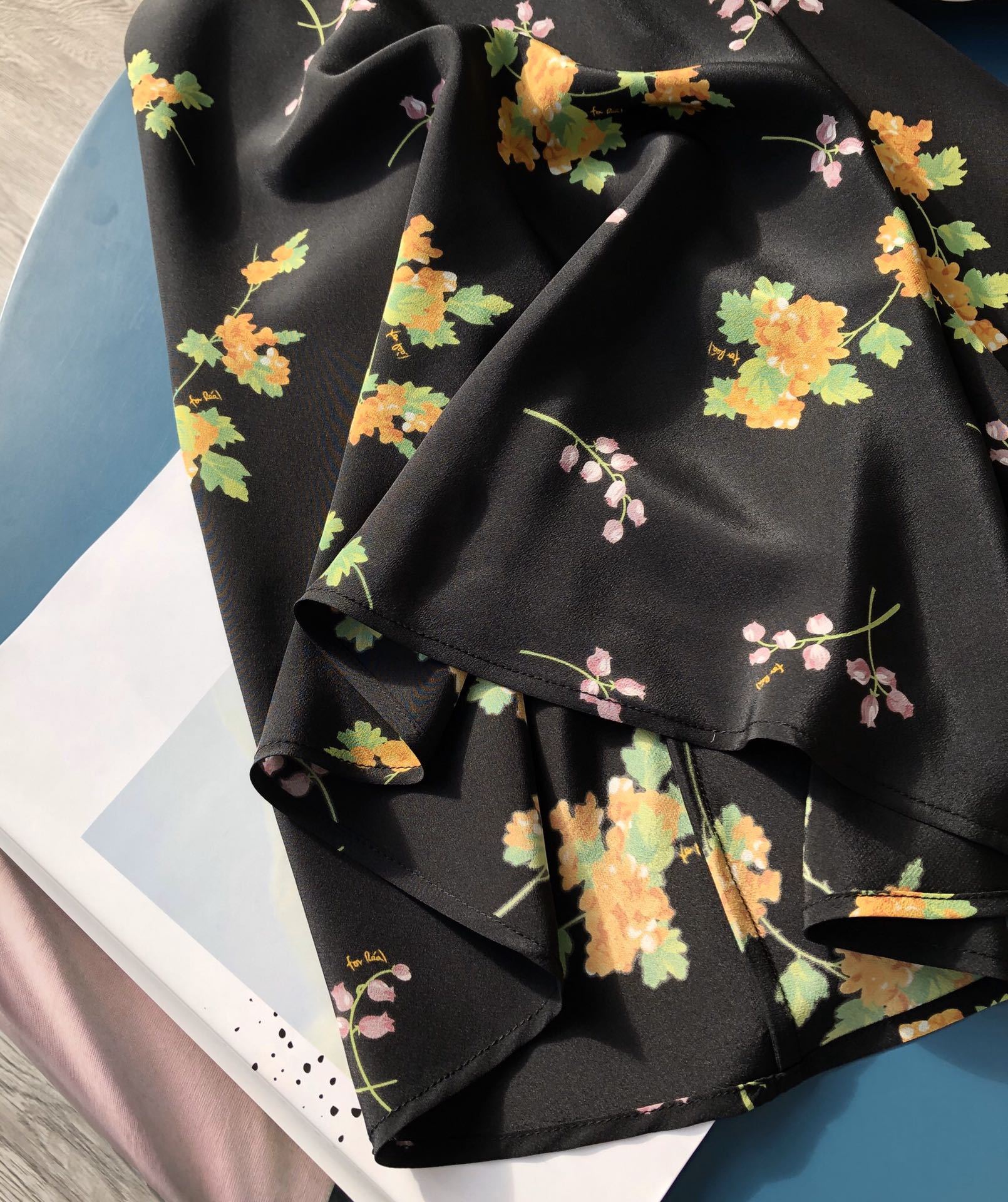 The leopard print satin half skirt has the same effect (the slanted cut design uses at least twice as much material as the regular design!)